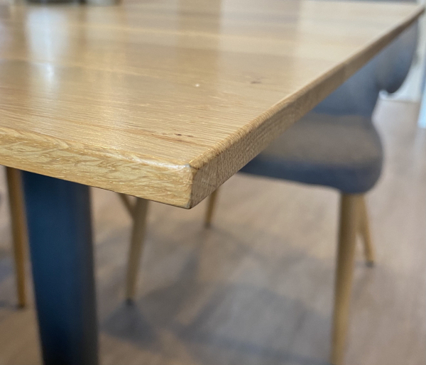 Die Fläche ist mit 80er Korn geschliffen und die Kanten sind sägerau (scharfkantig)