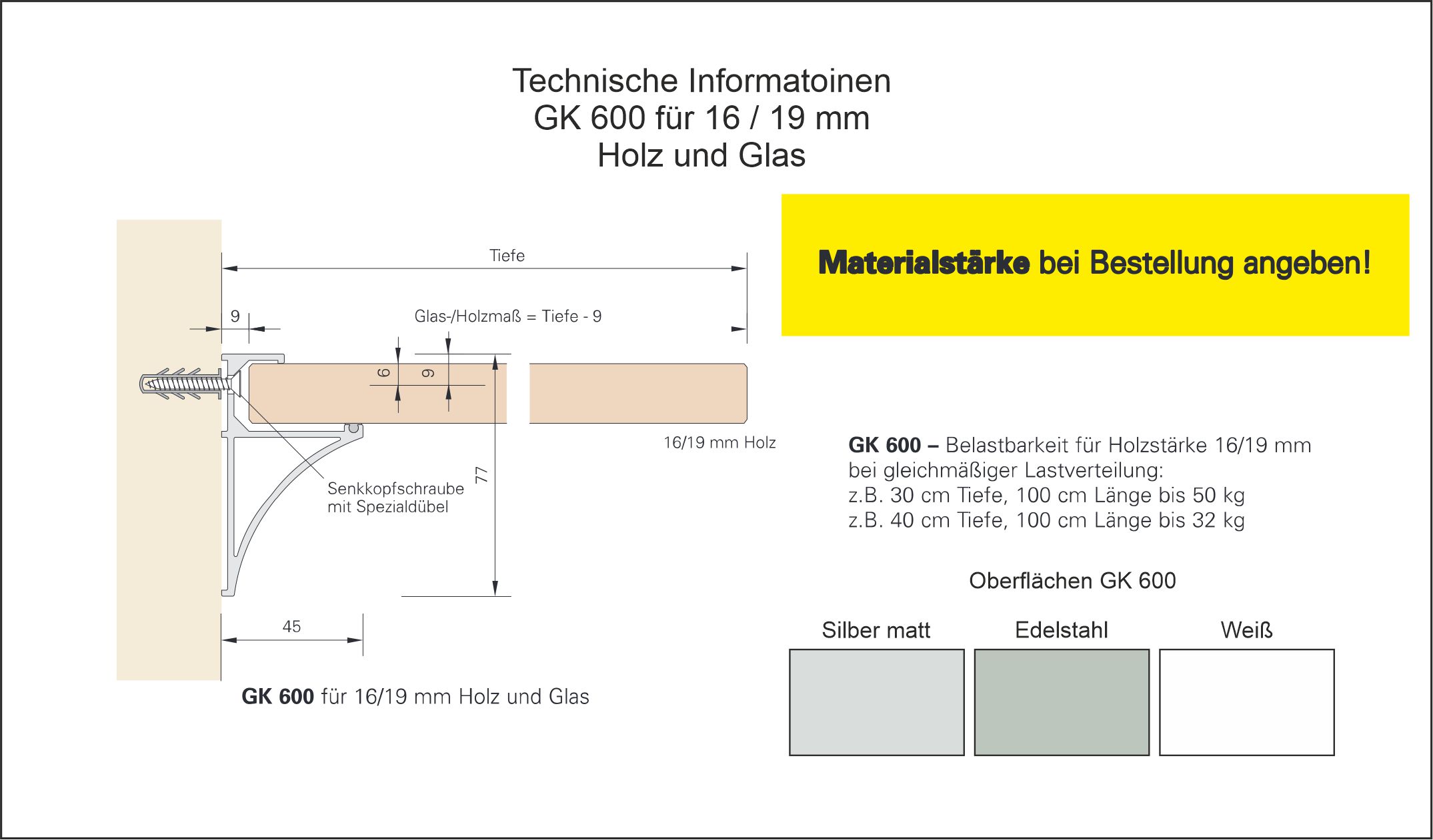 GK 600, wahlweise für Glas oder Holzplatten 16 bis 19 mm.